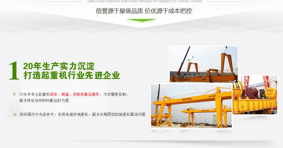 靖江市起重設(shè)備廠家直銷懸臂起重機、固定式懸臂起重機、單雙梁橋式起重機、簡易門式起重機、電動葫蘆門式起重機型號齊全,價格合理 - 座落在美麗富饒的江浙平原,魚米之鄉(xiāng)--江蘇省靖江市,位于長江之濱。毗鄰江陰長江公路大橋, 與江陰、張家港隔江相望,緊鄰上海、南京、蘇州、無錫等發(fā)達(dá)的大中城市,經(jīng)濟環(huán)境和地理位置得天獨厚。 緊靠京滬、寧通高速公路 公路和水路交通極為便利。